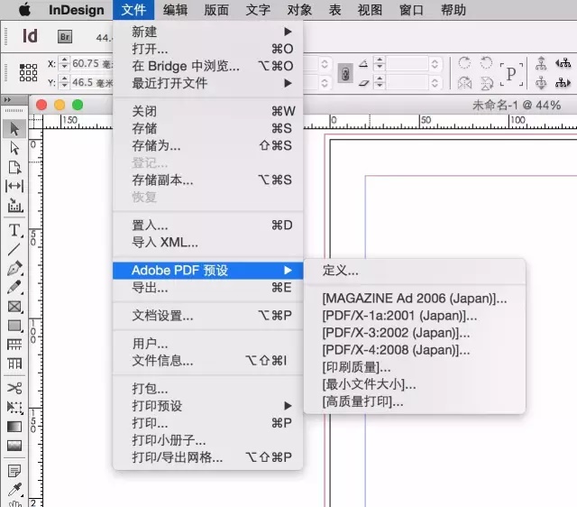 Adobe 公司的 Acrobat、InDesign、Illustrator 都能保存 PDF 文件。为了避免反复修改文件设置影响设计流程,在开始设计前需要做的是先用预定义设置优化压缩程序。在 Indesign 中,点击 PDF 预置→印刷质量。之后进行自定义 PDF 设置,点击文件→导出,选择.PDF 格式,在弹出的一个窗口里设置好裁剪、出血以及打印机的注册标记。在 Acrobat 中再次检查文件设置,确保准确无误。