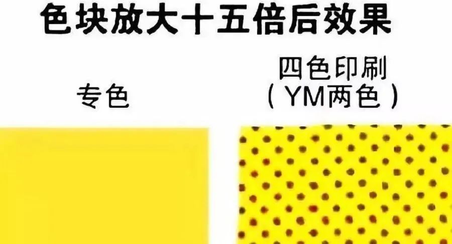 采用四色印刷工艺套印出的色块,容易因墨层厚度的改变及印刷工艺条件的变化引起色强度改变。网点扩大程度的变化,从而导致颜色改变。故采用四色印刷工艺套印出的色块,不容易取得墨色均匀的效果。